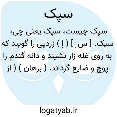 سپک. [ س ِ ] ( اِ ) زردیی را گویند که به روی غله زار نشیند و دانه گندم را پوچ و ضایع گرداند. ( برهان ) ( از آنندراج ).