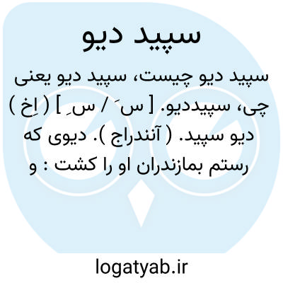 سپیددیو. [ س َ / س ِ ] ( اِخ ) دیو سپید. ( آنندراج ). دیوی که رستم بمازندران او را کشت: و کشتن سپیددیو و شاه مازندران را. و او را بازآورد. ( مجمل التواریخ و القصص ص 45 ). رجوع به دیو سپید شود.