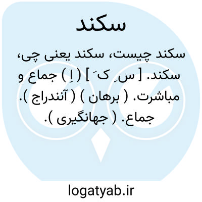 سکند. [ س ِ ک َ ] ( اِ ) جماع و مباشرت. ( برهان ) ( آنندراج ). جماع. ( جهانگیری ).