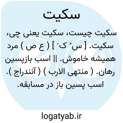سکیت. [ س ُ ک َ ] ( ع ص ) مرد همیشه خاموش. || اسب بازپسین رهان. ( منتهی الارب ) ( آنندراج ). اسب پسین باز در مسابقه. ( مهذب الاسماء ).