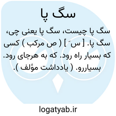 سگ پا. [ س َ ] ( ص مرکب ) کسی که بسیار راه رود. که به هرجای رود. بسیاررو. ( یادداشت مؤلف ).
