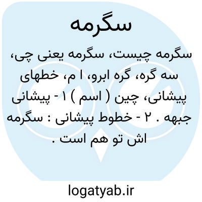 ( اسم ) ۱ - پیشانی جبهه. ۲ - خطوط پیشانی: سگرمه اش تو هم است.