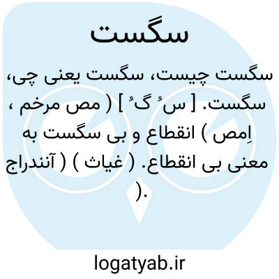 سگست. [ س ُ گ ُ ] ( مص مرخم، اِمص ) انقطاع و بی سگست به معنی بی انقطاع. ( غیاث ) ( آنندراج ).