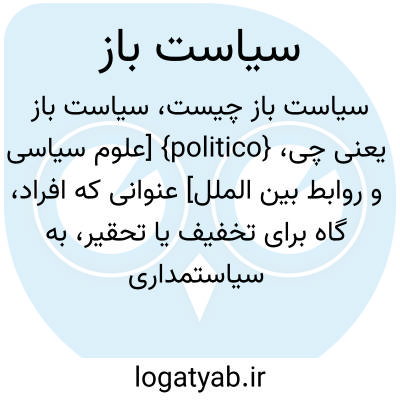 {politico} [علوم سیاسی و روابط بین الملل] عنوانی که افراد، گاه برای تخفیف یا تحقیر، به سیاستمداری که شیوۀ کار یا نظرهایش را نمی پسندند اطلاق می کنند