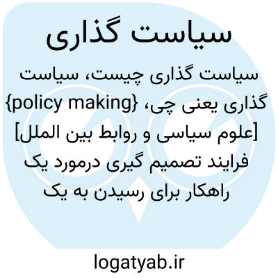 {policy making} [علوم سیاسی و روابط بین الملل] فرایند تصمیم گیری درمورد یک راهکار برای رسیدن به یک هدف مشخص