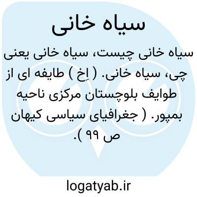 سیاه خانی. ( اِخ ) طایفه ای از طوایف بلوچستان مرکزی ناحیه بمپور. ( جغرافیای سیاسی کیهان ص 99 ).