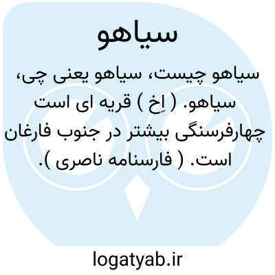 سیاهو. ( اِخ ) قریه ای است چهارفرسنگی بیشتر در جنوب فارغان است. ( فارسنامه ناصری ).