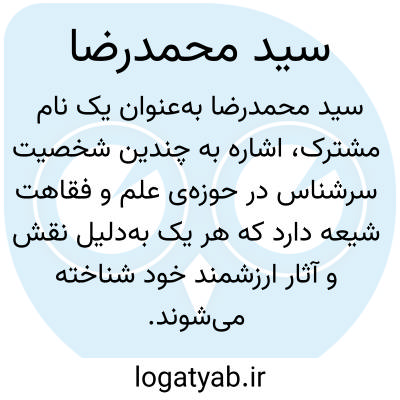 [ویکی فقه] سید محمدرضا (ابهام زدایی). سیدمحمدرضا ممکن است اسم برای اشخاص ذیل باشد: • سیّدمحمدرضا بن سیدمحمدمهدی بحرالعلوم، سیّدمحمدرضا بن سیدمحمدمهدی بحرالعلوم تنها پسر بازمانده از بحرالعلوم• سید محمدرضا سعیدی، از علمای معاصر شیعه و از مبارزان و شهدای انقلاب• سید محمدرضا شیرازی، معروف به مجدد ثانی و صاحب موسوعه صد و ده جلدی «الفقه» و اولین نوه آیت الله العظمی سید میرزا مهدی شیرازی• سید محمد رضا گلپایگانی، از مراجع بزرگ و علمای معاصر شیعه• سید محمد رضا جلالی حسینی، از عالمان و محققان و نسخه شناسان معاصر