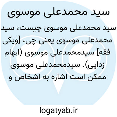 [ویکی فقه] سیدمحمدعلی موسوی (ابهام زدایی). سیدمحمدعلی موسوی ممکن است اشاره به اشخاص و شخصیت های ذیل باشد: • سیدمحمدعلی موسوی عاملی اصفهانی، عالم شیعی امامی، جامع منقول، عارف و شاعر و ادیب• سیدمحمدعلی موسوی جزایری، از علمای معاصر شیعه