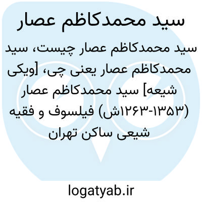 [ویکی شیعه] سید محمدکاظم عصار (۱۲۶۳-۱۳۵۳ش) فیلسوف و فقیه شیعی ساکن تهران بود. وی همزمان با دروس حوزوی دروس جدید را نیز ادامه داد و اولین دبیرستان را در تبریز تاسیس کرد. در دارالفنون، مدرسه سپهسالار و دانشکده معقول و منقول تدریس می کرد. در تدوین قانون مدنی ایران مشارکت داشت. سید شهاب الدین مرعشی نجفی، سیدعبدالاعلی سبزواری، سید احمد فردید، بدیع الزمان فروزانفر و سید حسین نصر از جمله شاگردان او هستند.