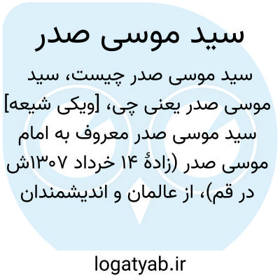 [ویکی شیعه] سید موسی صدر معروف به امام موسی صدر (زادهٔ ۱۴ خرداد ۱۳۰۷ش در قم)، از عالمان و اندیشمندان شیعه در عرصه فرهنگی و سیاسی است که پس از هجرت از ایران به لبنان، مجلس اعلای شیعیان لبنان و جنبش امل را تأسیس کرد و رهبری فکری و سیاسی شیعیان این کشور را عهده دار شد. او در ۹ شهریور ۱۳۵۷، طی سفری رسمی به لیبی به دعوت معمر قذافی، ناپدید شد. بسیاری گزارش ها حاکی از قتل او در همان زمان توسط قذافی است، ولی گزارش هایی نیز در دست است که بنابر آنها او کشته نشده و در زندان های لیبی بوده است. پس از سقوط معمر قذافی نیز هیچ گزارش رسمی جدیدی از وضعیت او به دست نیامده است.