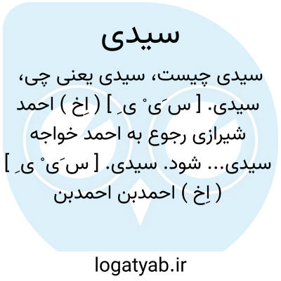 سیدی. [ س َی ْ ی ِ ] ( اِخ ) احمد شیرازی رجوع به احمد خواجه سیدی... شود.
