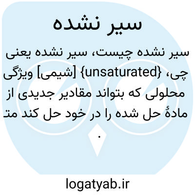 {unsaturated} [شیمی] ویژگی محلولی که بتواند مقادیر جدیدی از مادۀ حل شده را در خود حل کند متـ. اشباع نشده