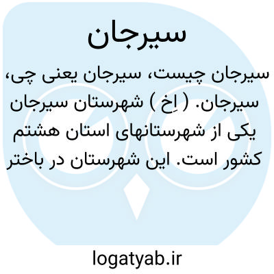 ۱ - شهرستانی است در مغرب کرمان ( ایالت کرمان ) و آن از طرف شمال بشهرستان رفسنجان از مشرق بشهرستان بم از جنوب بشهرستان بندرعباس و از مغرب بشهرستان شیراز محدود است. سیرجان از سه بخش ( بخش مرکزی بخش بافت و بخش مشیز ) تشکیل شده بخش مرکزی از ۸ دهستان تشکیل گردیده و مرکز بخش شهر کوچک سعید آباد است. بخش مزبور شامل ۲۷۲ آبادی و جمعیت آن ۱۳۲۲۹۵ تن است. ۲- شهر قدیمی سیرجان در ۸ کیلومتری سعید آباد بر سر راه کرمان ببندر عباس است و آن مرکز ایالت کرمان بود ( دوره عباسیان ) و پس از ۲ سال مقاومت بسبب قحطی تسلیم و خراب گردید و دیگر روی آبادی ندید.