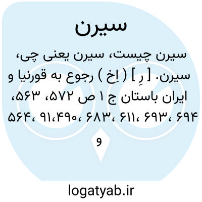 سیرن. [ رِ ] ( اِخ ) رجوع به قورنیا و ایران باستان ج 1 ص 572، 563، 564، 91،490، 683، 611، 693، 694 و ج 2 ص 1140، 1188، 1686، 932، 1913، 1358، 1358، 1984 و ج 3 ص 2157، 2034 شود.