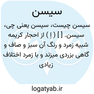 سیسن. [ ] ( اِ ) از احجار کریمه شبیه زمرد و رنگ آن سبز و صاف و گاهی بزردی میزند و با زمرد اختلاف زیادی ندارد مگر در سختی و خشکی. ( از بحر الجواهر ص 168 ).