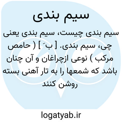 سیم بندی. [ ب َ ] ( حامص مرکب ) نوعی ازچراغان و آن چنان باشد که شمعها را به تار آهنی بسته روشن کنند و شبها چنان نماید که گویا شمعهای روشن در هوا معلقند، زیرا که آهن شبها بنظر نمی آید پس سیم در اینجا به معنی تار باشد. ( آنندراج ). یک قسم جشن که در آن چراغان میکنند. ( ناظم الاطباء ):
