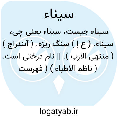 سیناء. ( ع اِ ) سنگ ریزه. ( آنندراج ) ( منتهی الارب ). || نام درختی است. ( ناظم الاطباء ) ( فهرست مخزن الادویه ). رجوع به سینا شود.