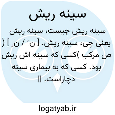 سینه ریش. [ ن َ / ن ِ ] ( ص مرکب )کسی که سینه اش ریش بود. کسی که به بیماری سینه دچاراست. || غمگین. دردمند. ( ناظم الاطباء ).