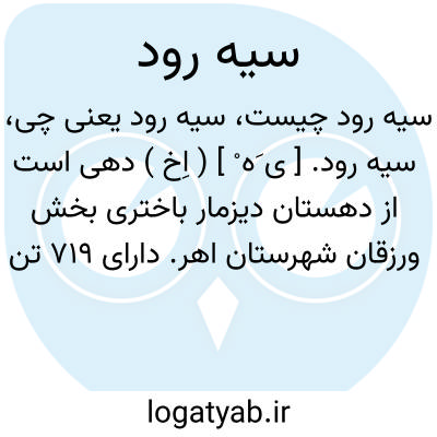 سیه رود. [ ی َه ْ ] ( اِخ ) دهی است از دهستان دیزمار باختری بخش ورزقان شهرستان اهر. دارای 719 تن سکنه. آب آن از رودخانه امیری و ارس. محصول آنجا غلات، برنج، پنبه، توتون و سردرختی. شغل اهالی زراعت، گله داری و کسب و صنایع دستی آنان جاجیم بافی است. ( از فرهنگ جغرافیائی ایران ج 4 ).
