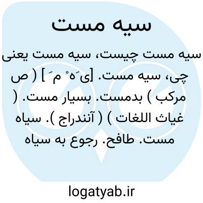 سیه مست. [ی َه ْ م َ ] ( ص مرکب ) بدمست. بسیار مست. ( غیاث اللغات ) ( آنندراج ). سیاه مست. طافح. رجوع به سیاه مست شود.