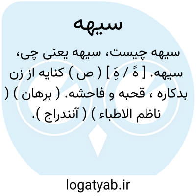 سیهه. [ هََ / هَِ ] ( ص ) کنایه از زن بدکاره، قحبه و فاحشه. ( برهان ) ( ناظم الاطباء ) ( آنندراج ).