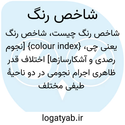 {colour index} [نجوم رصدی و آشکارسازها] اختلاف قدر ظاهری اجرام نجومی در دو ناحیۀ طیفی مختلف