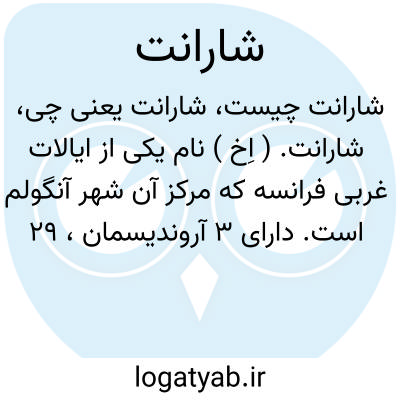 شارانت. ( اِخ ) نام یکی از ایالات غربی فرانسه که مرکز آن شهر آنگولم است. دارای 3 آروندیسمان، 29 کانتن و 426 کمون میباشد. 313000 تن جمعیت دارد. رود شارانت از آن عبور و اراضی آن را آبیاری میکند.