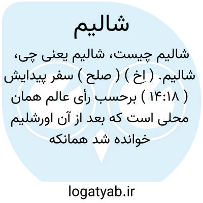 شالیم. ( اِخ ) ( صلح ) سفر پیدایش ( 14:18 ) برحسب رأی عالم همان محلی است که بعد از آن اورشلیم خوانده شد همانکه در مزامیر ( 76:2 ) سالیم مکتوب است.( قاموس کتاب مقدس ). رجوع به شالیم و اورشلیم شود.
