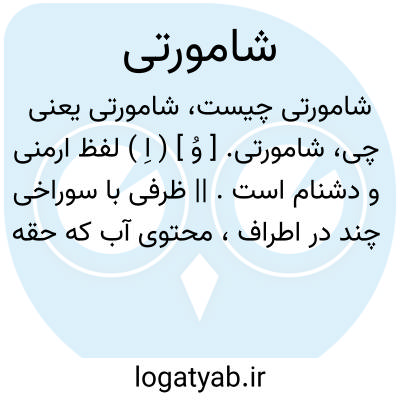 شامورتی. [ وُ ] ( اِ ) لفظ ارمنی و دشنام است. || ظرفی با سوراخی چند در اطراف، محتوی آب که حقه بازان دارند و هرگاه خواهند از او آب ریزد و چون منع کنند باز ایستد. ( یادداشت مؤلف ).
