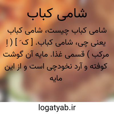 شامی کباب. [ ک َ ] ( اِ مرکب ) قسمی غذا. مایه آن گوشت کوفته و آرد نخودچی است و از این مایه گرده ها سازند و درروغن گداخته افکنند تا سرخ شود. سبب تسمیه آن است که آن را از ملک شام تقلید کرده اند یا اینکه بیشتر درشام ( غذای اول شب ) خورده میشود. ( از فرهنگ نظام ).