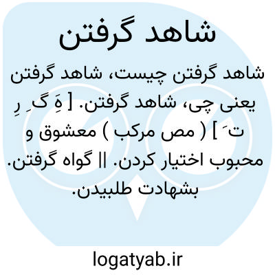 شاهد گرفتن. [ هَِ گ ِ رِ ت َ ] ( مص مرکب ) معشوق و محبوب اختیار کردن. || گواه گرفتن. بشهادت طلبیدن. برای اثبات قضیه ای شاهد آوردن.