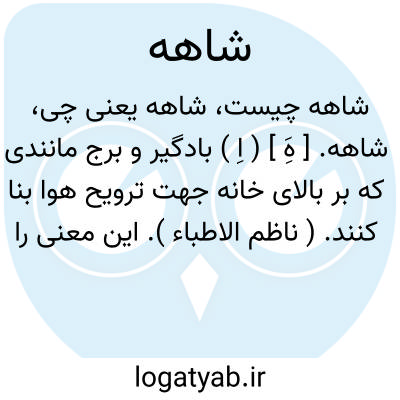شاهه. [ هَِ ] ( اِ ) بادگیر و برج مانندی که بر بالای خانه جهت ترویح هوا بنا کنند. ( ناظم الاطباء ). این معنی را در فرهنگهای دیگر نیاورده اند.