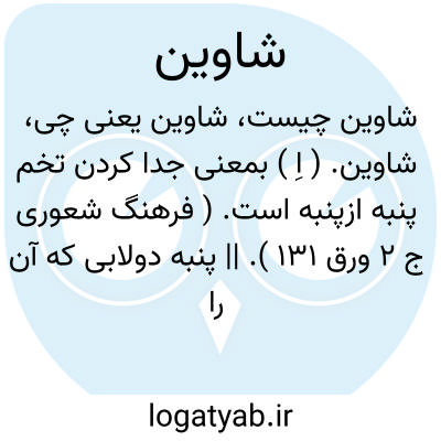شاوین. ( اِ ) بمعنی جدا کردن تخم پنبه ازپنبه است. ( فرهنگ شعوری ج 2 ورق 131 ). || پنبه دولابی که آن را شاوین پنبه نیز گویند. ( فرهنگ شعوری ج 2 ورق 131 ). اما این لغت با دو معنی آن جای دیگر دیده نشد و محتمل است از مجعولات شعوری باشد.