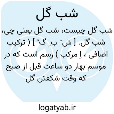 شب گل. [ ش َ ب ِ گ ُ ] ( ترکیب اضافی، اِ مرکب ) رسم است که در موسم بهار دو ساعت قبل از صبح که وقت شکفتن گل است به سیر گلزار میروند. و در چراغ هدایت نوشته که شبهای ایام بهار را «شب گل » گویند. چرا که در ایام بهار تمام گلها بشکفد و مردم در آن ایام سیر کنند. ( از بهار عجم ) ( آنندراج ). شب مهتاب در فصل گل سرخ که مردم به گشت گلزار میروند. ( فرهنگ نظام ):