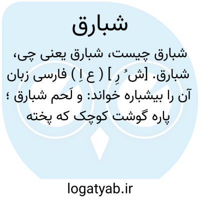 شبارق. [ ش َ رِ ] ( ع اِ )قطعه ها. پاره ها. ( از اقرب الموارد ). || گوشتهای پخته گوناگون. ( از متن اللغة ). || پاره گوشت کوچک که پخته شده باشد. و این کلمه معرب است. ( از متن اللغة ). پاره های گوشت مطبوخ و این معرب است. ( منتهی الارب ) ( از اقرب الموارد ). || گروه و دسته از مردم. ( از متن اللغة ). جماعت. ( منتهی الارب ) ( از اقرب الموارد ). || جامه پاره پاره شده. ( از اقرب الموارد ). جامه پاره. || پاره های جامه. || نوعی درخت بلند. ( منتهی الارب ). نوعی درخت بلند که چوب آن را برای دور ماندن ستور و سایر چارپایان از گزند به گردن آنها آویزند. ( از اقرب الموارد ). و نیز رجوع به شُبارِق شود.