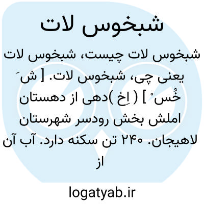 شبخوس لات. [ ش َ خُس ْ ] ( اِخ )دهی از دهستان املش بخش رودسر شهرستان لاهیجان. 240 تن سکنه دارد. آب آن از رودخانه محلی و محصول آن برنج، چای و عسل است. ( از فرهنگ جغرافیائی ایران ج 2 ).