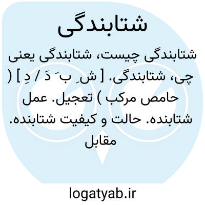 شتابندگی. [ ش ِ ب َ دَ / دِ ] ( حامص مرکب ) تعجیل. عمل شتابنده. حالت و کیفیت شتابنده. مقابل آهستگی: