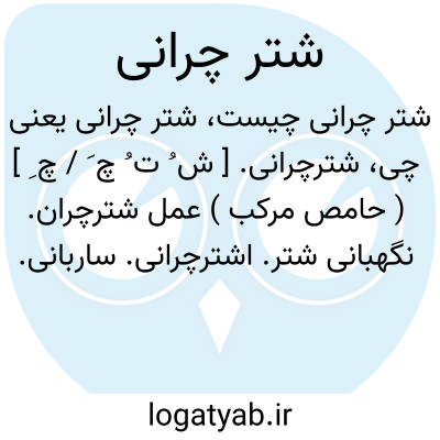 شترچرانی. [ ش ُ ت ُ چ َ / چ ِ ] ( حامص مرکب ) عمل شترچران. نگهبانی شتر. اشترچرانی. ساربانی. شتربانی. رجوع به اشترچرانی شود.