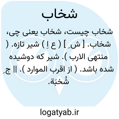 شخاب. [ ش ِ ] ( ع اِ ) شیر تازه. ( منتهی الارب ). شیر که دوشیده شده باشد. ( از اقرب الموارد ). || ج ِ شُخبَة. ( منتهی الارب ). رجوع به شخبة شود.