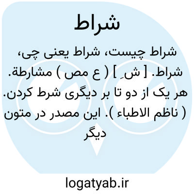 شراط. [ ش ِ ] ( ع مص ) مشارطة. هر یک از دو تا بر دیگری شرط کردن. ( ناظم الاطباء ). این مصدر در متون دیگر نبود. در تاج العروس مشارطة به معنی «شرط کل منها علی صاحبه » آمده است.