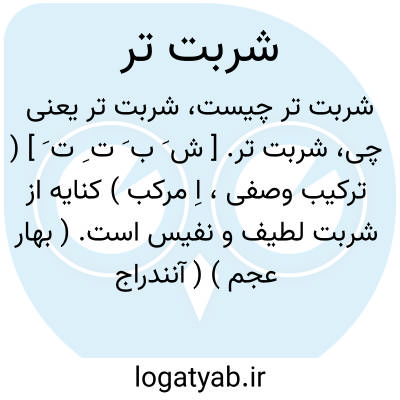 لغت نامه دهخدا شربت تر. [ ش َ ب َ ت ِ ت َ ] ( ترکیب وصفی، اِ مرکب ) کنایه از شربت لطیف و نفیس است. ( بهار عجم ) ( آنندراج ): چو دولاب کو شربت تر دهدازین سر ستاند از آن سردهد.نظامی.