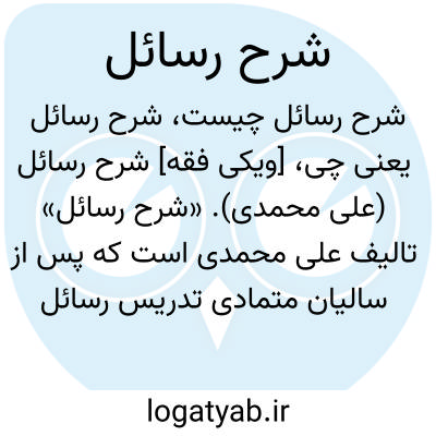 [ویکی فقه] شرح رسائل (علی محمدی). «شرح رسائل» تالیف علی محمدی است که پس از سالیان متمادی تدریس رسائل شیخ انصاری، به شرح آن همت گمارده است و بی شک یکی از بهترین و روان ترین شروح فارسی است که در هفت جلد تدوین شده است.