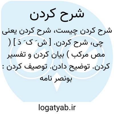 شرح کردن. [ ش َ ک َ دَ ] ( مص مرکب ) بیان کردن و تفسیر کردن. توضیح دادن. توصیف کردن: بونصر نامه نویسد و این حال را شرح کند همه ودل وی را دریافته اید. ( تاریخ بیهقی چ ادیب ص 331 ).