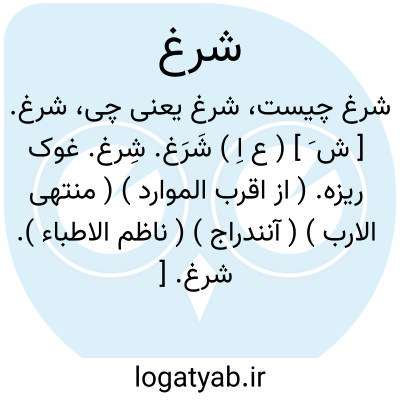 شرغ. [ ش َ رَ ] ( ع اِ ) شَرغ. ( از اقرب الموارد ) ( ناظم الاطباء ). رجوع به شَرغ شود.
