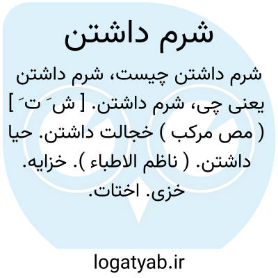 شرم داشتن. [ ش َ ت َ ] ( مص مرکب ) خجالت داشتن. حیا داشتن. ( ناظم الاطباء ). خزایه. خزی. اختات. اختثاث. ( منتهی الارب ). حیا کردن. خجالت کشیدن. خجل گشتن. ( یادداشت مؤلف ). تزاؤک. تزایل. خزایت. اتئاب. ( منتهی الارب ). استحیاء. ( منتهی الارب ) ( دهار ). استحاء. احتشام. ( منتهی الارب ). خمر. ( دهار ) ( منتهی الارب ) ( تاج المصادر بیهقی ). اصطناء. ( تاج المصادر بیهقی ) ( المصادر زوزنی ). تخفر. ( تاج المصادر بیهقی ). طساء. ( منتهی الارب ). طناء.( منتهی الارب ). اتیاب. ( المصادر زوزنی ):