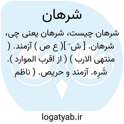 شرهان. [ ش َ ]( ع ص ) آزمند. ( منتهی الارب ) ( از اقرب الموارد ). شَرِه. آزمند و حریص. ( ناظم الاطباء ). رجوع به شره شود.