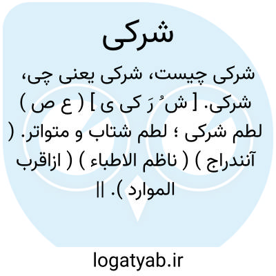 شرکی. [ ش ُرْ رَ کی ی ] ( ع ص ) شُرَّکی. ( ناظم الاطباء ) ( منتهی الارب ) ( از اقرب الموارد ). رجوع به شُرَکی شود.