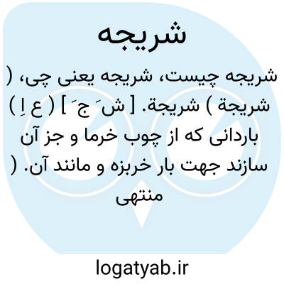 ( شریجة ) شریجة. [ ش َ ج َ ] ( ع اِ ) باردانی که از چوب خرما و جز آن سازند جهت بار خربزه و مانند آن. ( منتهی الارب ) ( ناظم الاطباء ) ( از اقرب الموارد ). || کمانی که از چوب شریج سازند. ( از اقرب الموارد ) ( منتهی الارب ) ( آنندراج ) ( ناظم الاطباء ). کمانی که از نی سازند. ( غیاث اللغات ). || کابک کبوتران که از نی ساخته باشند. ( منتهی الارب ) ( آنندراج ) ( ناظم الاطباء ). آشیانه کبوتران که از نی سازند. ( از اقرب الموارد ). || پاره ای از هر چیزی. ( منتهی الارب ) ( ناظم الاطباء ) ( آنندراج ). || قطعه ای از پی که پر تیر را بدان محکم بندند. ( از منتهی الارب ) ( از آنندراج ) ( از اقرب الموارد ) ( ناظم الاطباء ). || جلد کتاب. ج، شَرائج. ( ناظم الاطباء ).