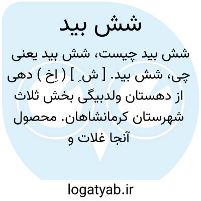 شش بید. [ ش ِ ] ( اِخ ) دهی از دهستان ولدبیگی بخش ثلاث شهرستان کرمانشاهان. محصول آنجا غلات و لبنیات و حبوب وتوتون و سکنه آن 500 تن و آب آن از چشمه های متعدد است. ساکنان آن از طایفه ولدبیگی در دو محل نزدیک به هم واقع شده اند. ( از فرهنگ جغرافیایی ایران ج 6 ).